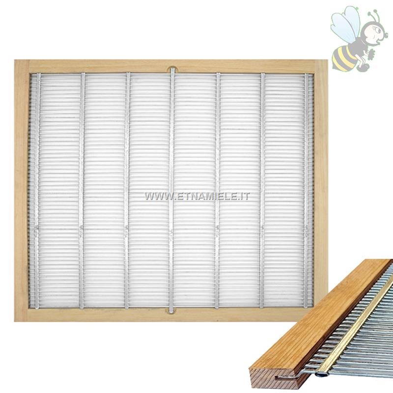 Escludi regina a telaio cm. 43x50. Escludiregina a griglia 43x50 cm (per D.B.std.10), in acciaio trafilato e zincato, con telaio in legno, disassato